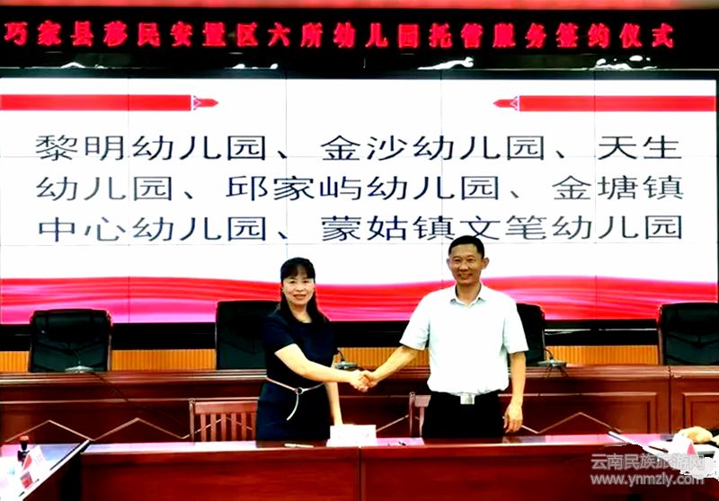 6所安置區(qū)幼兒園委托管理簽約儀式(右為巧家縣教育體育局局長張勇同志)