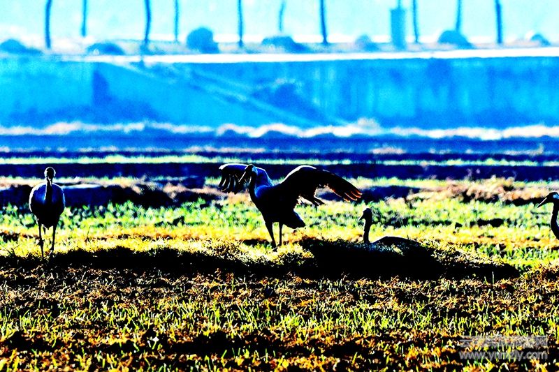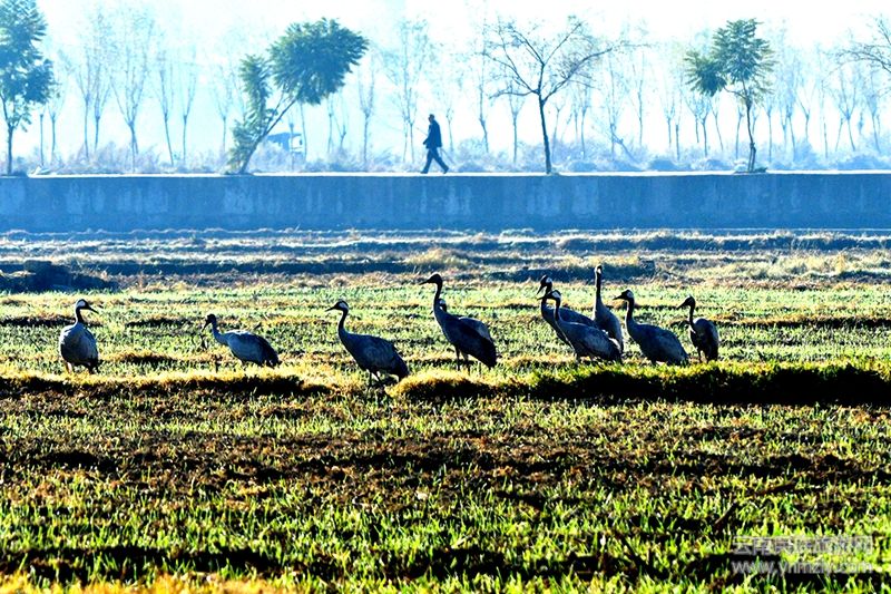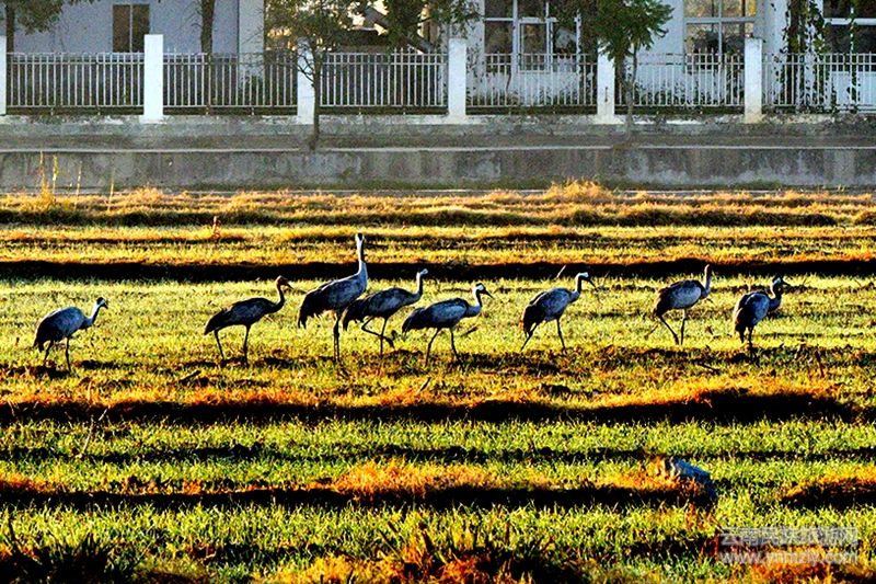 第一次拍到這么漂亮的灰鶴,袁自泰非常地激動(dòng)和自豪,他每天早上都會(huì)去看看它們的生活情況,用相機(jī)定格各個(gè)美麗的瞬間。田野間,灰鶴群們一會(huì)兒在覓食嬉戲,一會(huì)兒從這一塊田飛到那一塊田,一副悠閑自在的樣子。不遠(yuǎn)處,晨跑的人們、出工的車輛來(lái)回穿梭,與田間覓食嬉戲的灰鶴勾勒出一幅人與自然和諧共生的美麗畫卷。