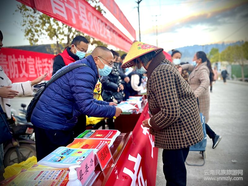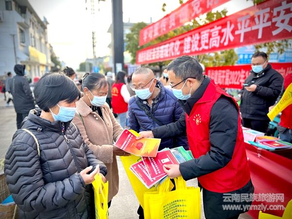 本網(wǎng)訊(通訊員李茂偉 楊魯小一) “來來來,孃孃、大爹,我們是普法宣傳服務(wù)志愿者,12月4日是國家憲法日,馬上要到了,今天我們給大家普及下憲法頒布實施、憲法內(nèi)容等相關(guān)法律常識。憲法是我國的根本大法,是所有法律的母法,我們國家現(xiàn)行憲法是1982年12月4日,審議通過并頒布實施的,到今年已經(jīng)是40周年了……”這樣的聲音時時回蕩在昌寧縣城南小區(qū)農(nóng)貿(mào)市場上空。12月1日上午,昌寧縣開展2022年國家憲法日暨“憲法宣傳周”集中示范宣傳活動,活動圍繞“學(xué)習(xí)宣傳貫徹黨的二十大精神,推動全面貫徹實施憲法”主題開展,縣委宣傳部、縣委政法委、縣人大辦、縣普法辦、縣司法局、縣衛(wèi)健局、縣住建局、縣教體局、縣婦聯(lián)、縣關(guān)工委等多家部門共同參與。