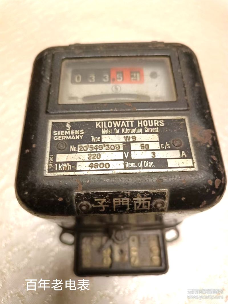 有一次,在南屏街的古玩城,我見到一塊外國電表,店主在電表旁邊標注,說“這是一塊德國制造禪臣牌交流電度表,大清光緒年末由德國制造出口中國,昆明是全國較早使用交流電的地方,中國第一座水電站,石龍壩水電站,現(xiàn)已成為全國重點文物保護單位,該電表體積小,水晶玻璃窗框,至今運行正常,內(nèi)部結(jié)構(gòu),可靠性能等指標,超過目前中國制造的電表,(百年回顧)”,我見到后,當(dāng)即把它買了下來,這是我收藏的第一塊電表。現(xiàn)在,在我收藏的十多塊電表中,既有國外的,也有國內(nèi)早期制造的。