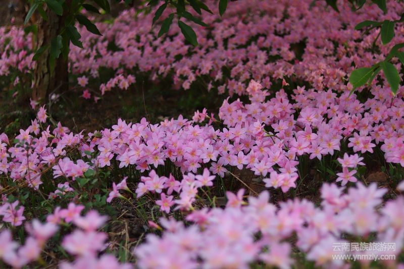 進(jìn)入五月,云南省保山市昌寧縣更戛鄉(xiāng)山野河谷到處開(kāi)滿(mǎn)韭蘭花。在木瓜樹(shù)村、立達(dá)村的山坡上,一片片韭蘭花絢麗綻放,一朵朵、一簇簇,美麗優(yōu)雅、千嬌百媚,微風(fēng)吹來(lái),粉紅色的花朵隨風(fēng)搖曳,讓人心曠神怡,徜徉在粉色花海中,讓人不知不覺(jué)沉醉其中,宛如夢(mèng)幻世界。從高處看,數(shù)十畝韭蘭花海連綿起伏,與藍(lán)天、青山相映,分外美麗。