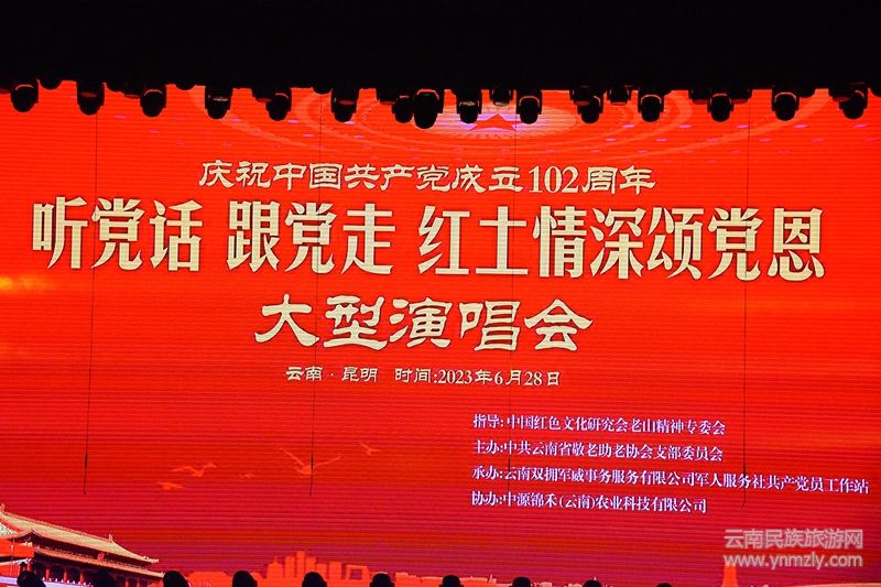 本網(wǎng)訊(尹紹平):紅歌獻(xiàn)給黨、 傾情頌黨恩。6月28日,為慶祝中國(guó)共產(chǎn)黨成立102周年,一場(chǎng)由中國(guó)紅色文化研究會(huì)老山精神專委會(huì)指導(dǎo),中國(guó)云南省敬老助老協(xié)會(huì)黨支部主辦;云南雙擁軍威事務(wù)服務(wù)有限公司軍人服務(wù)社共產(chǎn)黨員工作作站承辦;中源錦禾(云南)農(nóng)業(yè)科技有限公司贊助的“相約昆明、唱響七一、不忘初心、永遠(yuǎn)跟黨走"大型演唱會(huì)在昆明市工人文化宮隆重舉行,來(lái)自黨、政、軍、工、企及社區(qū)推薦的支部隊(duì)伍一同唱響奮進(jìn)的凱歌。