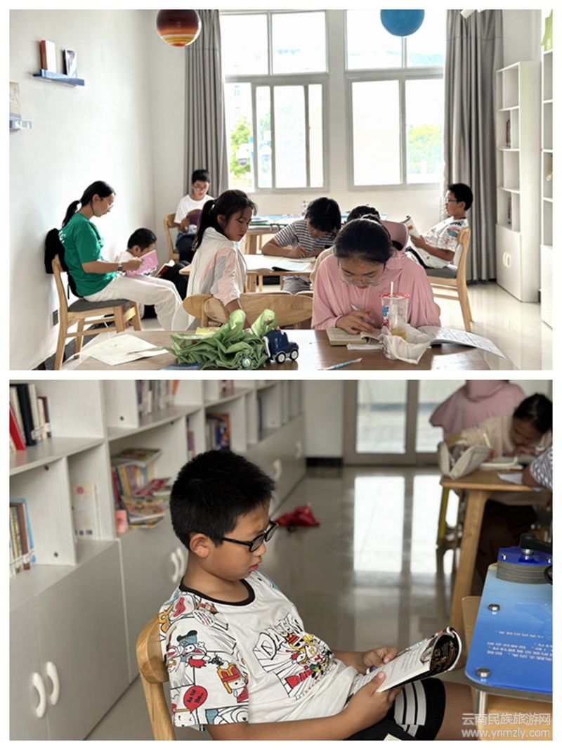 利用農(nóng)家書(shū)屋、社區(qū)圖書(shū)室等資源,通過(guò)志愿者領(lǐng)讀、作講解,孩子們跟讀、談感悟的方式,讓孩子在閱讀里暢游世界,探索宇宙,享受閱讀帶來(lái)的樂(lè)趣,讓學(xué)生在暑假中“充電”不停,學(xué)習(xí)不止。