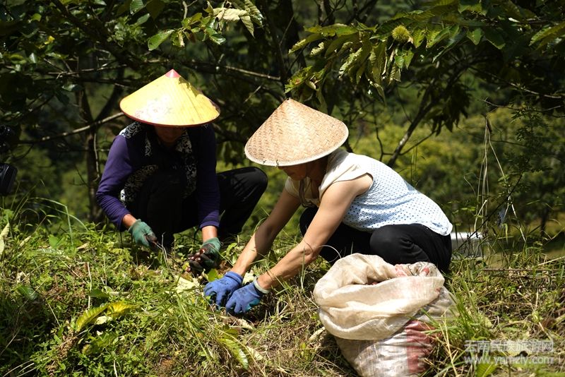 本網(wǎng)訊:眼下,保山市昌寧縣萬畝板栗迎來收獲季,漫山遍野的板栗樹果實(shí)累累,沉甸甸的栗蓬掛滿枝頭,栗農(nóng)們穿梭林間采收板栗,一派豐收景象。