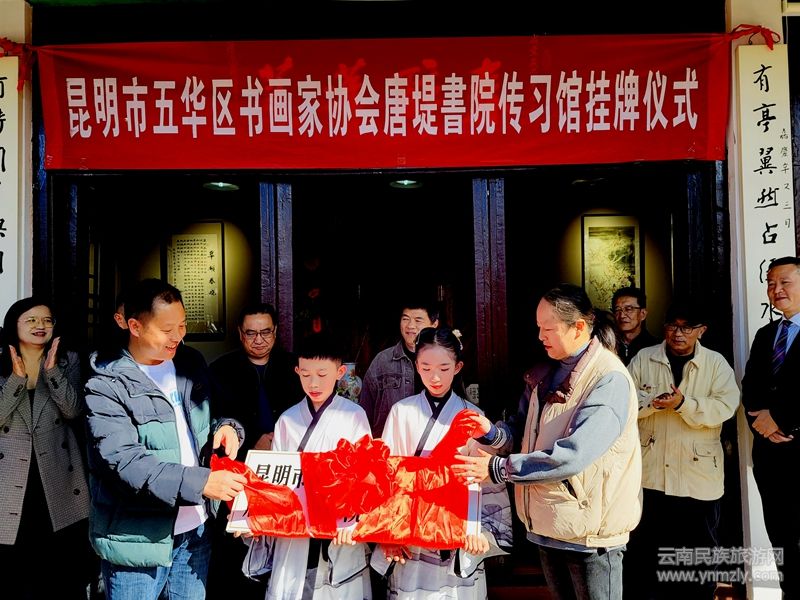 本網(wǎng)訊:12月9日下午,昆明市五華區(qū)書畫家協(xié)會(huì)唐堤書院傳習(xí)館在翠湖公園內(nèi)觀魚樓•唐堤書院揭牌成立。