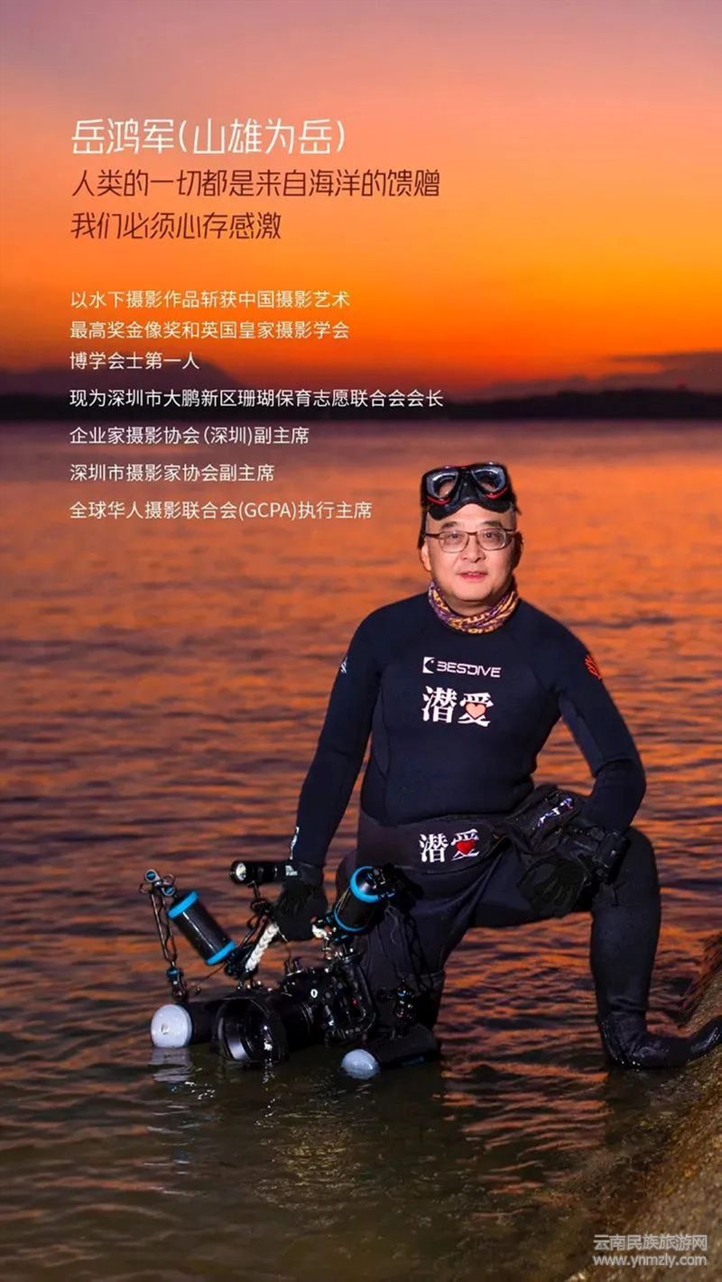 深圳是一座海濱城市,又面臨著建設(shè)‘全球海洋中心城市’的使命,無論從地緣文化的角度,還是面對(duì)大海的呼喚,岳鴻軍還有很多很多的事情要做,在獲得的榮譽(yù)和成果后面,是新的挑戰(zhàn)和壓力,是不斷地做出新的努力和奉獻(xiàn)。岳鴻軍自己也發(fā)自肺腑的說道:“我想通過不斷努力,鼓動(dòng)更多的攝影師加入水下攝影,向世界表達(dá)海洋環(huán)保的重要性,激發(fā)公眾對(duì)海洋的關(guān)注和關(guān)愛,讓我們的子孫后代,不是面對(duì)一個(gè)空蕩蕩的死寂海洋,盡一份綿薄之力,則此生足矣!”