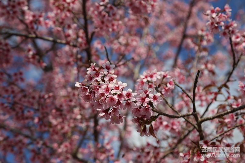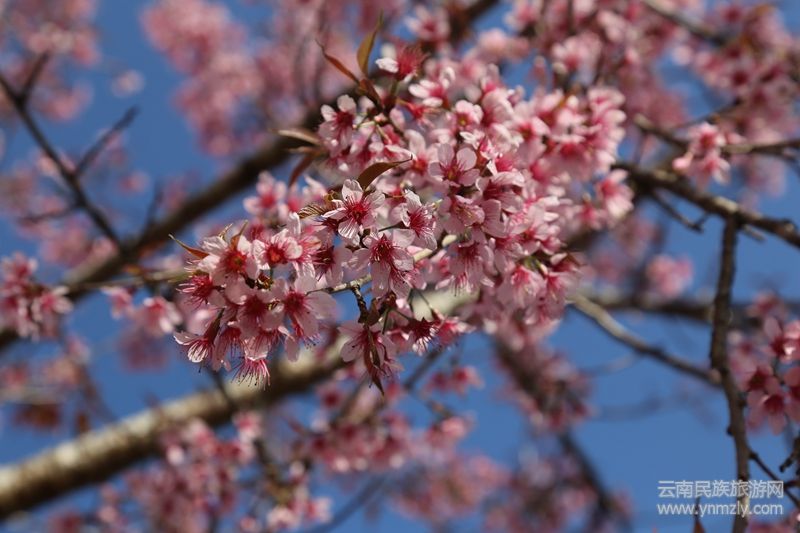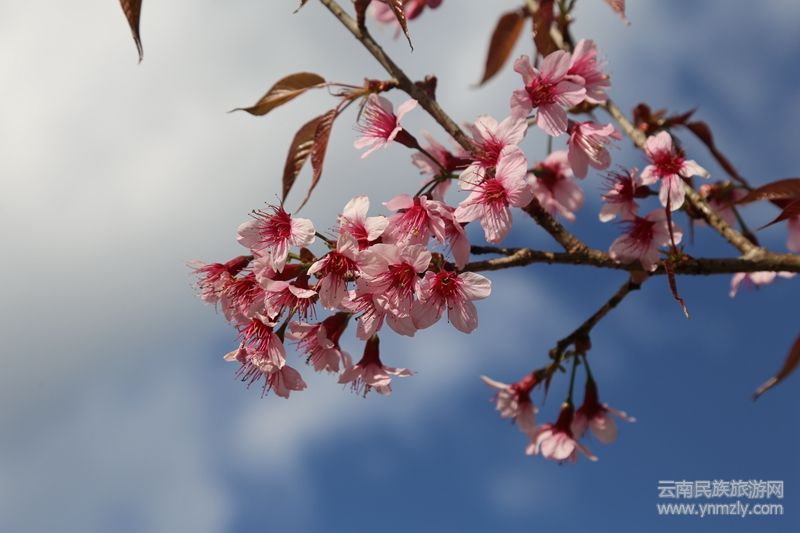 本網(wǎng)訊:“櫻花開燦如云霞,櫻花落滿地成詩。”“櫻桃花參差,香雨紅霏霏。”燦若紅霞的紅櫻俏立枝頭,構(gòu)成了一幅如夢如幻的冬日畫卷。誰說冬天就是蕭瑟的,誰說冬天沒有花朵盛放,當粉紅的櫻花與湛藍的天空在同一畫面時,你就會知道冬天的浪漫。