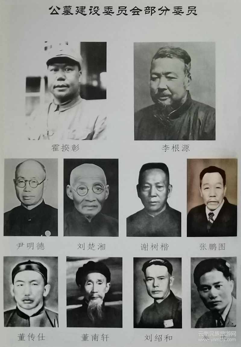 為了讓人們世代不忘國恥家恨,永遠記住烈士的英名,騰沖光復后不久,云貴監(jiān)察使李根源和第二十集團軍總司令霍揆彰首倡為烈士建立陵園。1944年11月16日,“騰沖陣亡將士紀念建筑委員會”在騰沖成立,推舉霍揆彰為主任委員,李根源為副主任委員,集團軍少將高參孫嘯鳳具體負責工程的監(jiān)修。協(xié)修的地方官紳有騰沖縣長劉楚湘、騰沖善后委員會主任尹明德,以及劉紹和、董友薰、董傳士、張鵬圖、謝樹楷等11人。