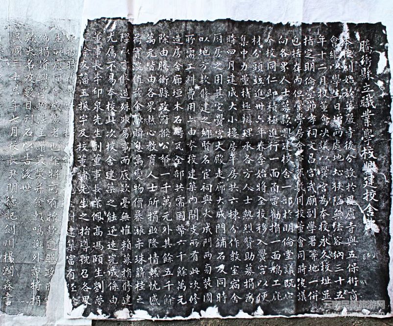 騰沖縣立職業(yè)學校興建校舍記拓片。尹明德記、張鑫教跋 (賈志偉提供)