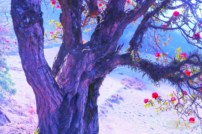 以前,我們數(shù)次光臨此地,而關(guān)注的焦點在于杜鵑花的分布情況等,此次考察,以植物學研究者眼光看待問題,故而側(cè)重于樹齡及生態(tài)環(huán)境考究,且據(jù)專家介紹,杜鵑花旁的榿木樹等,都是杜鵑花共生環(huán)境必不可少的植物。此次考察,完全刷新了此前我們對于滇灘杜鵑花的認識,時值我正在為滇灘鎮(zhèn)作歌《滇灘賦》,原來歌詞為“滿山杜鵑紅”,考察完畢,欣然將歌詞改為“百年杜鵑紅”,甚至有人建議改為“千年杜鵑紅”,歌詞內(nèi)涵完全改變了。專家還提出將滇灘打造成“杜鵑花之鄉(xiāng)”的建議。