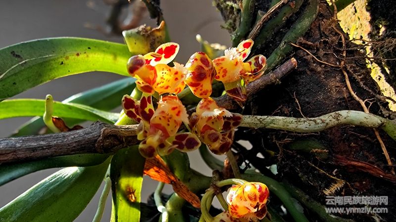盆距蘭在我國(guó)主要分布于海南、云南、西藏等地。在云南龍陵主要附生在常綠闊葉林的樹(shù)(枝)干上。其被列入《瀕危野生動(dòng)植物國(guó)際貿(mào)易公約》(CITES)Ⅱ級(jí),受?chē)?guó)際貿(mào)易公約保護(hù)物種。(圖/文 郁云江 楊榮廷 李開(kāi)平 賀彬)
