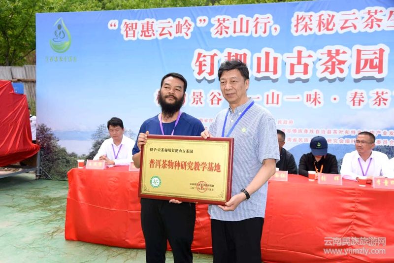 云南省民族茶文化研究會(huì)執(zhí)行會(huì)長(zhǎng)陳正榮授予“釘耙山普洱茶基因物種庫(kù)和保護(hù)基地”的匾牌;云南省民族茶文化研究會(huì)相關(guān)領(lǐng)導(dǎo),還向文哲村茶農(nóng)代表頒發(fā)“茶農(nóng)之家”牌子。