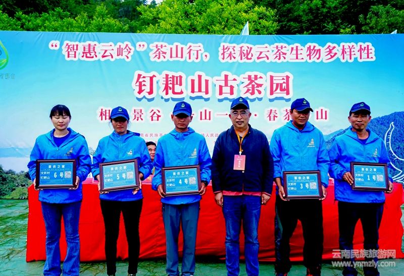 現(xiàn)場(chǎng)云南省民族茶文化研究會(huì)會(huì)長(zhǎng)陶國(guó)相向文折村五名茶農(nóng)代表頒發(fā)“茶農(nóng)之家”的牌子。據(jù)了解,“茶農(nóng)之家”是研究會(huì)正在實(shí)施的農(nóng)業(yè)數(shù)字化創(chuàng)新項(xiàng)目,釘耙山于2024年3月7日加入“茶農(nóng)之家”。截至2023年3月,茶農(nóng)之家已經(jīng)完成茶農(nóng)和茶企的交易信息展示平臺(tái)的落地,現(xiàn)有121家SC認(rèn)證的茶廠,12200戶試點(diǎn)茶農(nóng)加入到平臺(tái)中。