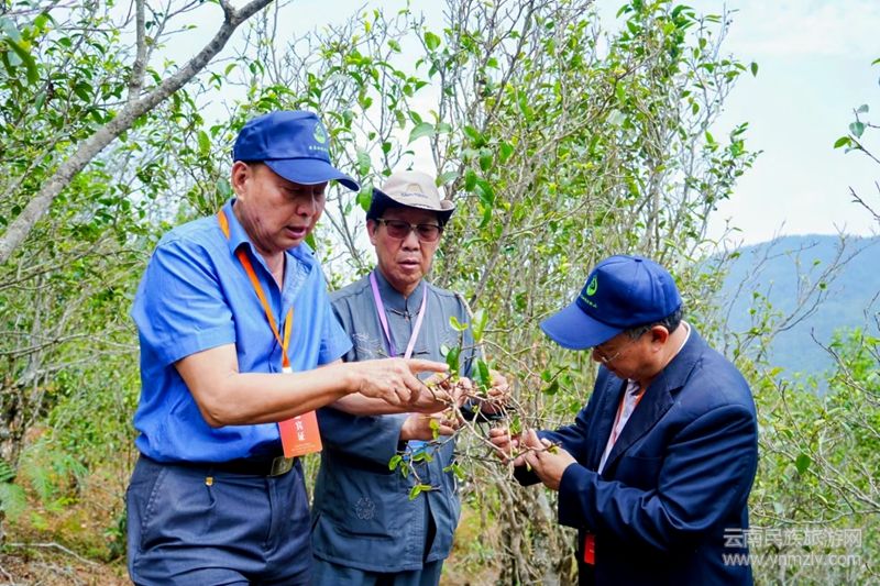 當(dāng)天活動(dòng)的重頭戲是,來(lái)賓和媒體記者跟隨研究會(huì)的領(lǐng)導(dǎo)和茶葉專(zhuān)家探秘釘耙山古茶園。經(jīng)過(guò)云南省民族茶文化研究會(huì)榮譽(yù)副會(huì)長(zhǎng)戴云和云南省農(nóng)業(yè)科學(xué)院茶科所原所長(zhǎng)、西雙版納州茶葉協(xié)會(huì)會(huì)長(zhǎng)汪云剛,以及云南省農(nóng)業(yè)科學(xué)院茶葉研究所原所長(zhǎng)、國(guó)務(wù)院特津?qū)<摇⑽麟p版納州茶業(yè)協(xié)會(huì)專(zhuān)家顧問(wèn)研究員王平盛的現(xiàn)場(chǎng)勘察,現(xiàn)場(chǎng)教學(xué),給來(lái)賓們上了一堂別開(kāi)生面的普洱茶生物多樣性的課程,學(xué)會(huì)識(shí)別古茶園里的細(xì)葉、小葉以及紅梗紅葉等。“大家注意看,茶樹(shù)有大葉、中葉、小葉和細(xì)葉,葉片顏色有綠色、深綠、偏黃等,還有紅梗紅葉。”云南省農(nóng)業(yè)科學(xué)院茶科所原所長(zhǎng)、西雙版納州茶葉協(xié)會(huì)會(huì)長(zhǎng)汪云剛指著茶樹(shù)葉子說(shuō):“茶樹(shù)通過(guò)野性繁殖,實(shí)現(xiàn)生物多樣性。釘耙山古茶園茶樹(shù)本身的生物多樣性非常豐富,堪稱(chēng)茶樹(shù)的基因庫(kù)。”此外在釘耙山茶書(shū)館里,還舉辦了一個(gè)媒體茶話會(huì),媒體記者與社科專(zhuān)家、研究會(huì)領(lǐng)導(dǎo)、茶葉專(zhuān)家就釘耙山生物多樣性等話題展開(kāi)探討交流。