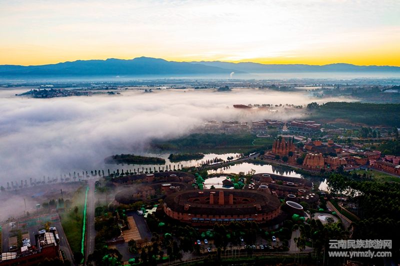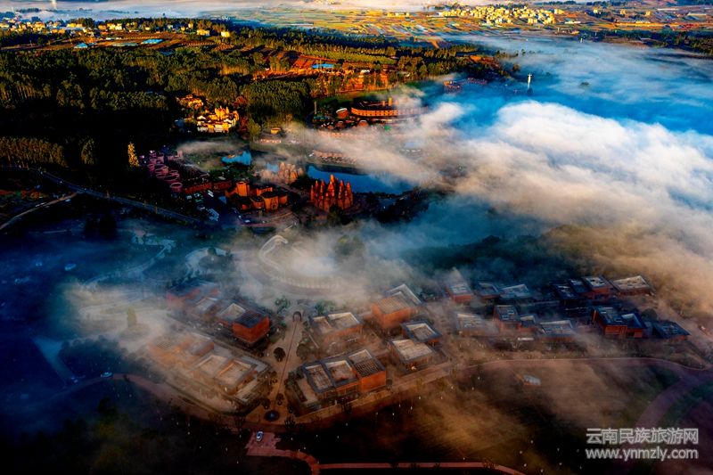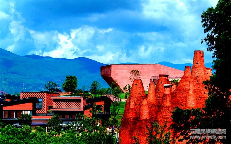 隨處可見的紅磚經(jīng)過藝術(shù)家的堆砌,就成了鑲嵌在彌勒這片土地上特色的藝術(shù)品。萬花筒、印章坊、半朵云、牛哆啰,隨心而成的紅磚建筑,在綠樹流水之間生根發(fā)芽,散發(fā)著獨(dú)特的魅力,在云聚云散間吸引著無數(shù)的人來來去去。