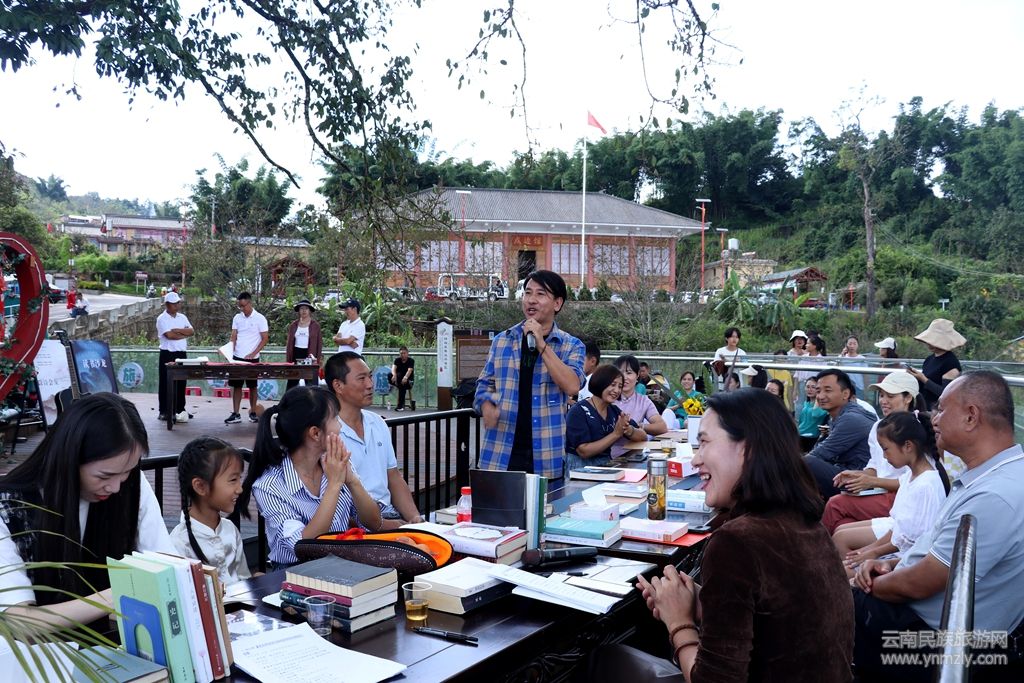 秋日的暖陽下,鎮(zhèn)康縣賜福彝寨旅游景區(qū)同心樹下洋溢著濃厚的書香與和諧的氣息,一場以“民族團結(jié)鑄同心”為主題的讀書沙龍活動在此溫馨啟幕。