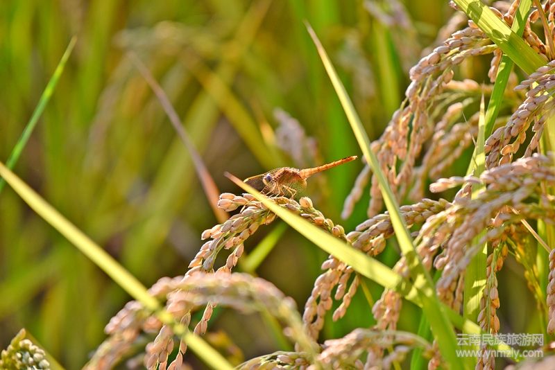 秋天的田園,寧靜里充滿生機(jī),每一種生命,都在這里遇見見了美好。聞香而來的文鳥大快朵頤吃稻谷,抓魚的鷺鷥鳥潛于田間耐心等待,捉蟲或吃稻的其它鳥嘰嘰喳喳飛來飛去,抓鳥的鷹隼游弋空中靜待時(shí)機(jī),蜻蜓靜立稻穗作最后的告別……