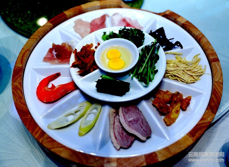 豐富多樣的配菜,宛如一幅絢麗多彩的畫(huà)卷。鮮嫩的肉片、爽脆的蔬菜、噴香的豆皮、咸鮮的火腿、整只的鮮蝦…… 一一整齊擺放在盤(pán)中,翹首以盼與米線的浪漫邂逅。當(dāng)滾燙的熱湯注入碗中,260° 的高溫瞬間激活了所有食材的蓬勃活力,熱氣騰騰、氤氳繚繞,四溢的香味令人垂涎三尺。