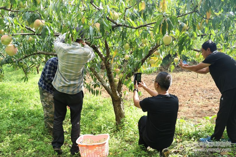 在木場鄉(xiāng)木場村厥壩自然村冬桃種植基地,百畝冬桃林郁郁蔥蔥。一顆顆身著粉紅“外衣”的成熟冬桃掛滿枝頭,微風(fēng)拂過,果香四溢,令人垂涎。這里的種植戶劉小梅正引導(dǎo)前來的顧客采摘果型美、肉質(zhì)好的冬桃。云南警官學(xué)院駐村工作隊(duì)長江濟(jì)趁周末也來“嘗鮮”,他稱贊道:“這桃子相當(dāng)脆甜,感覺比去年味道還好。駐村以來,我深感木場風(fēng)景優(yōu)美,桃花島很值得大家來賞景、品桃。”