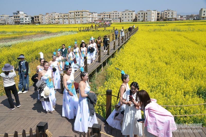 本網(wǎng)訊(通訊員 楊崇云攝影報(bào)道)昆明晉寧區(qū)沙堤村,800 畝金黃油菜花海綻放,滿城飄香,期間吸引了近萬(wàn)人前來(lái)游玩踏青,引游客駐足。