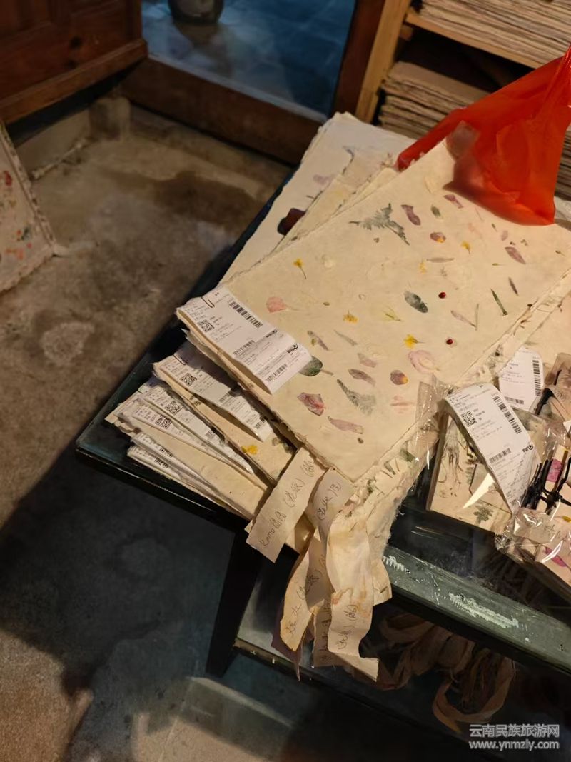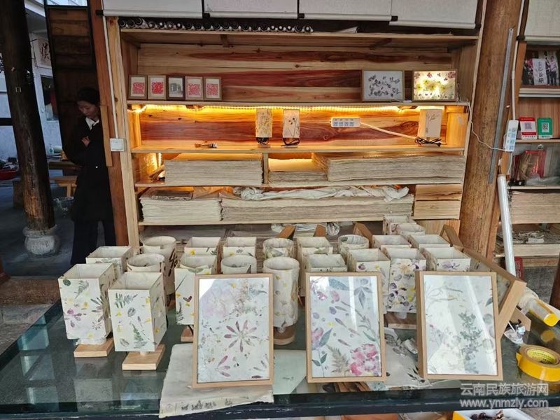 如今,手工抄紙除了用作傳統(tǒng)的書畫紙張、文本、包裝紙外,紙藝匠人們還創(chuàng)意制作了紙扇、臺(tái)燈、油紙傘等文創(chuàng)產(chǎn)品,實(shí)現(xiàn)了從單純?cè)旒埖缴a(chǎn)文創(chuàng)產(chǎn)品的轉(zhuǎn)變,并借助“互聯(lián)網(wǎng)”的東風(fēng),拓展了手工抄紙流通的市場(chǎng)與空間,主要通過當(dāng)?shù)氐闹谱鞴し弧⑽幕w驗(yàn)區(qū)以及線上電商平臺(tái)等渠道進(jìn)行銷售。游客可以在高黎貢山手抄紙博物館、和順古鎮(zhèn)等地的體驗(yàn)區(qū)內(nèi)了解并購(gòu)買手抄紙,同時(shí)也可以通過電商平臺(tái)進(jìn)行遠(yuǎn)程購(gòu)買。2024年新莊手工抄紙產(chǎn)量2000余萬張,產(chǎn)值800余萬元,手工抄紙及文創(chuàng)產(chǎn)品遠(yuǎn)銷意大利、德國(guó)、韓國(guó)等多個(gè)國(guó)家。2019年,手工抄紙被納入全市重點(diǎn)旅游項(xiàng)目,在各級(jí)的扶持下,新莊社區(qū)新建成了一個(gè)造紙文化園區(qū)、一個(gè)創(chuàng)意功能區(qū),為游客提供一站式服務(wù)。