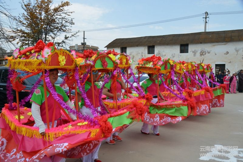 在米線節(jié)開(kāi)幕式上,花農(nóng)代表與嘉賓共同登臺(tái),為古城花籃插上象征幸福的花朵;隨后,盛大的民間民俗巡演開(kāi)始,秧佬鼓舞、舞龍舞獅、彩船蚌殼等傳統(tǒng)表演精彩紛呈,一路繞村巡演,引得眾多游客紛紛駐足觀看,現(xiàn)場(chǎng)喝彩聲不斷。