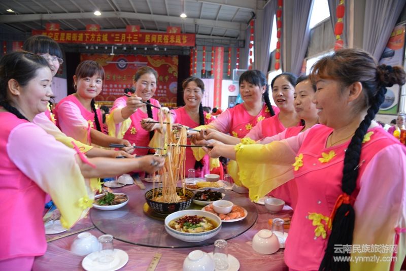 昆明市晉寧區(qū)昆陽(yáng)街道下方古城的“三月十三”米線節(jié),至今已有300多年歷史。2016年,下方古城村“米線節(jié)”被列入昆明市第四批市級(jí)非物質(zhì)文化遺產(chǎn)保護(hù)名錄。該節(jié)日由昆陽(yáng)街道周邊各村迎土主、城隍儀式演變而來(lái),因活動(dòng)期間以米線為主食,故而得名。