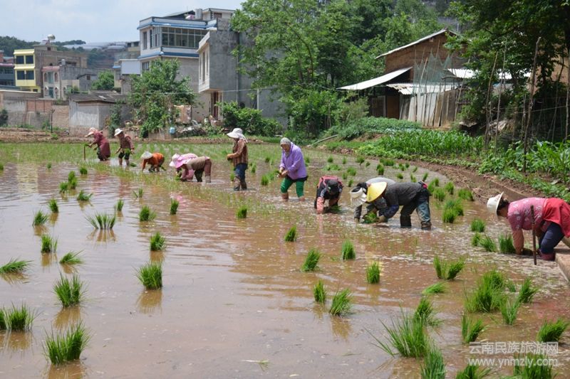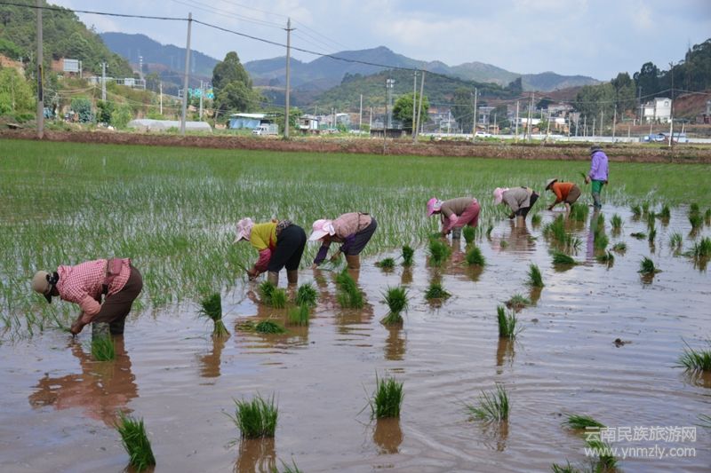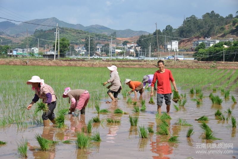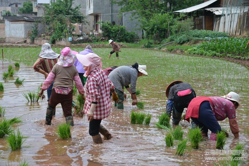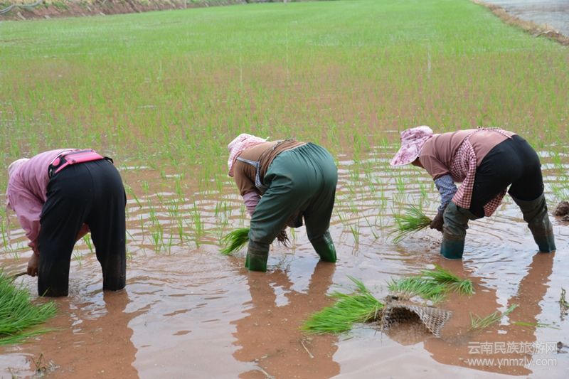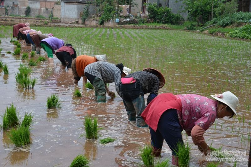 有個婦人在田間唱,大田栽秧在四方,鄉(xiāng)村農(nóng)民來栽秧,花海脫在田埂上,細皮嫩肉下泥漿。