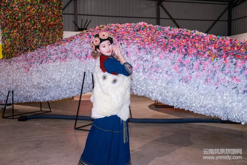 學(xué)術(shù)支持代表、著名學(xué)者夏可君教授隨后發(fā)言。他提到,古原的綜合藝術(shù)具有極其重要的文旅價值。古原將地方性與民族性的文化歷史記憶、超越維度的莊嚴(yán)儀式、節(jié)日的熱烈氣氛、當(dāng)代藝術(shù)的個人想象力,以及AI技術(shù)的算法,以一種前所未有的創(chuàng)造性方式綜合在一起,充分體現(xiàn)了中國藝術(shù)的創(chuàng)造性原理。特別是在展覽現(xiàn)場,當(dāng)我們目睹龍與蛇的巨型作品時,這些蘊含中國文化吉祥符號的花彩作品,其色彩的絢爛與濃烈,深深地震撼了到場的觀眾,必將成為麗江一道新的瑰麗景觀。
