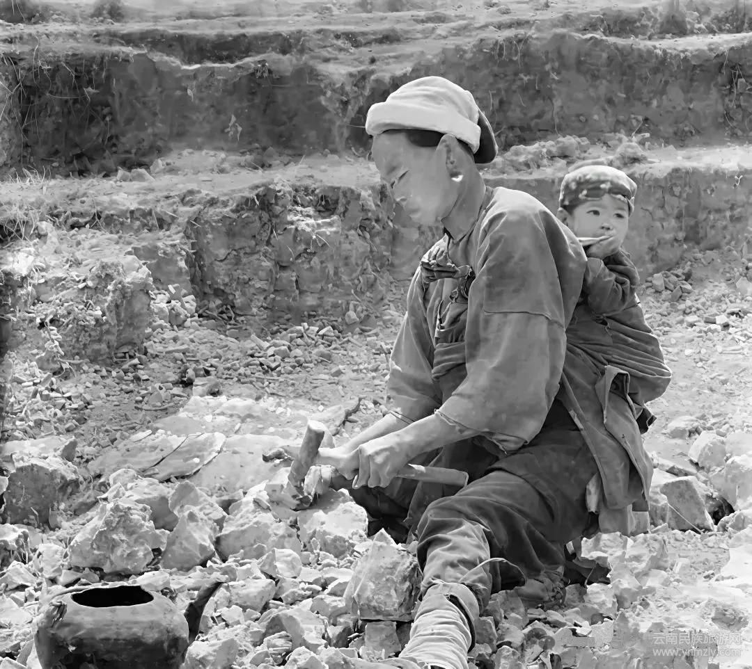 為了抗戰(zhàn),小腳婦女身背孩子參加到修路的隊伍中